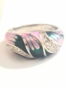 SREBRNY PIERŚCIONEK 925 Z EMALIĄ R.17